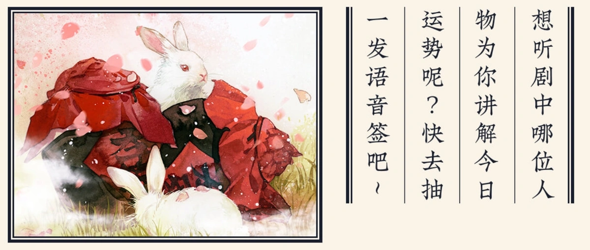 想听剧中哪位人物为你讲解今日运势呢?快去抽 一发语音签吧~